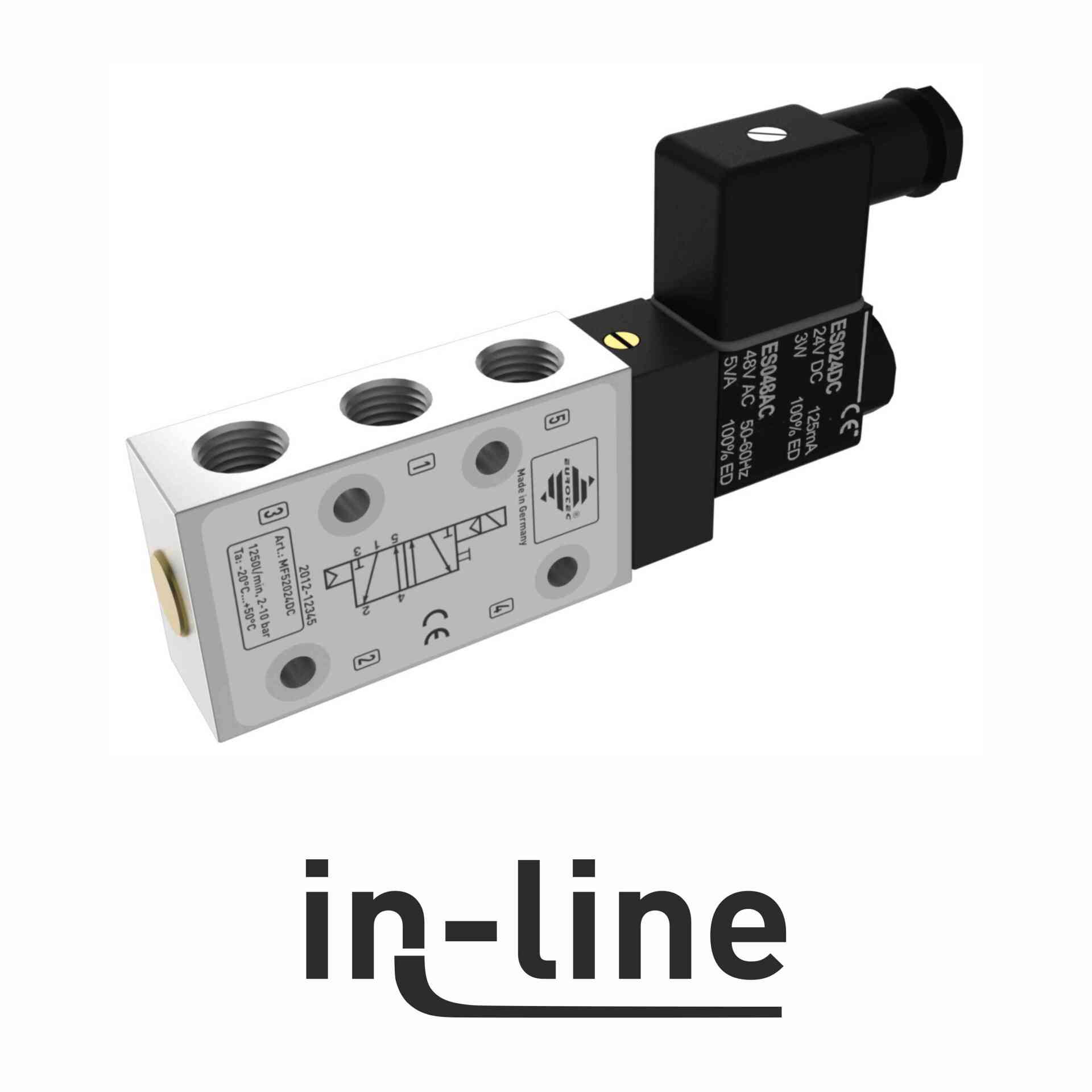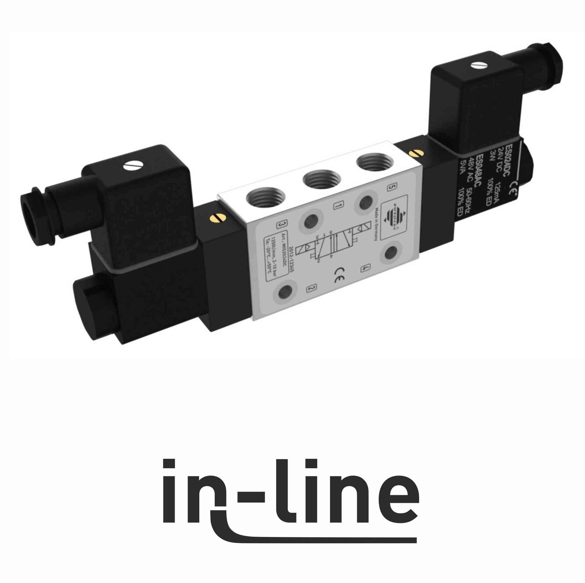 Our In-Line solenoid valves are for the central installation in a control box or assembly on linear actuators, lift drives or gate valves. With the bistable solenoid valve we differentiate 5/2 way and 5/3 way function with the optional centre position; closed, deaerated or aerated.