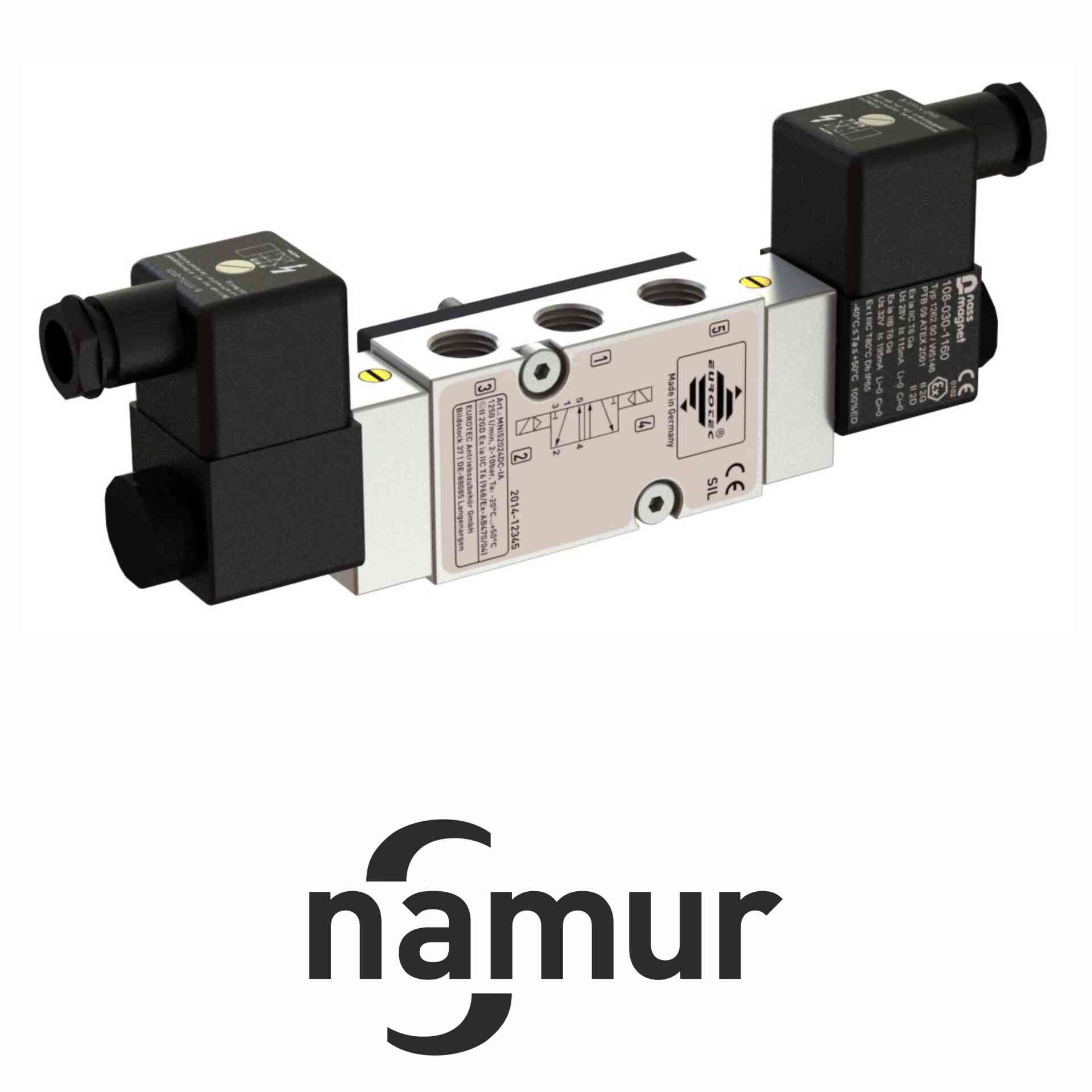 La nostra elettrovalvola bistabile NAMUR è adatta al montaggio diretto su attuatori pneumatici rotatori. Questa elettrovalvola permette di differenziare tra 5/2 e 5/3 vie con il centro di posizionamento optional; chiuso, areato o de-areato.