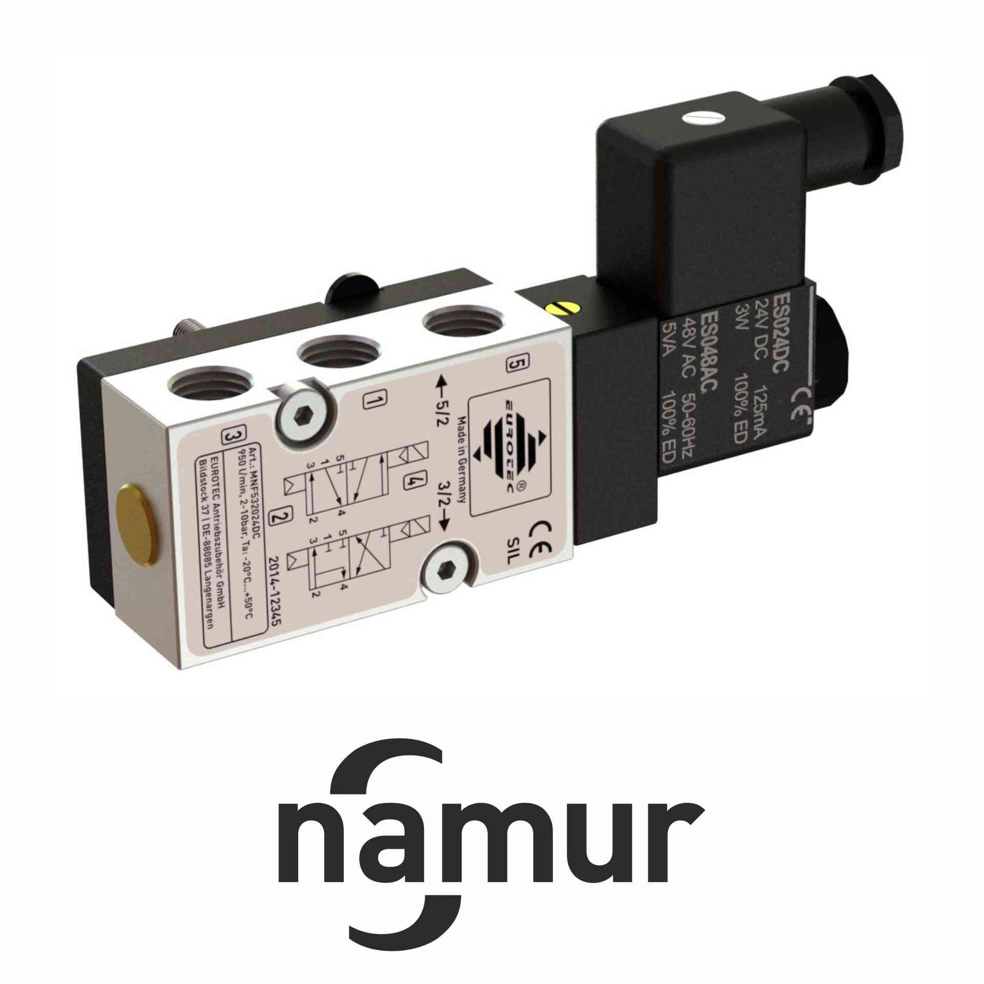 La nostra elettrovalvola monostabile NAMUR è perfetta per il montaggio diretto su attuatori pneumatici rotatori. Grazie alla sua chiusura inversa, troverete la funzione combinata 3/2 e 5/2 vie in una sola elettrovalvola, che agevolerà anche il magazzino. In questo modo potrete regolare non solo il ritorno a molla, ma anche sensori pneumatici doppi con la stessa elettrovalvola.