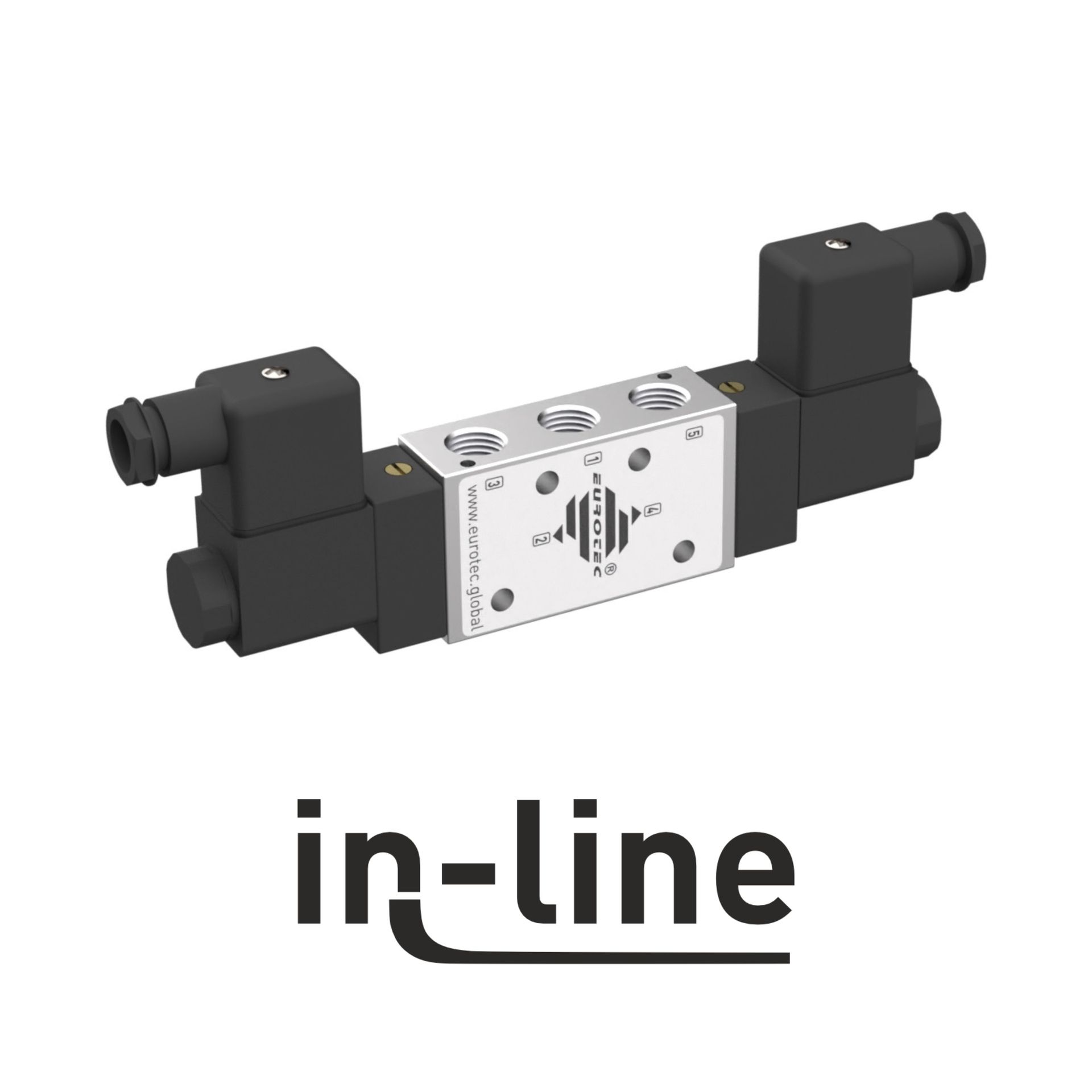 Le nostre elettrovalvole In-line sono adatte all’installazione centrale in box di controllo o assemblaggio su attuatori lineari, valvole inclinate o valvole a ghigliottina. Con le nostre elettrovalvole bistabili differenziamo tra 5/2 e 5/3 vie con il centro di posizionamento optional; chiuso, areato o de-areato.