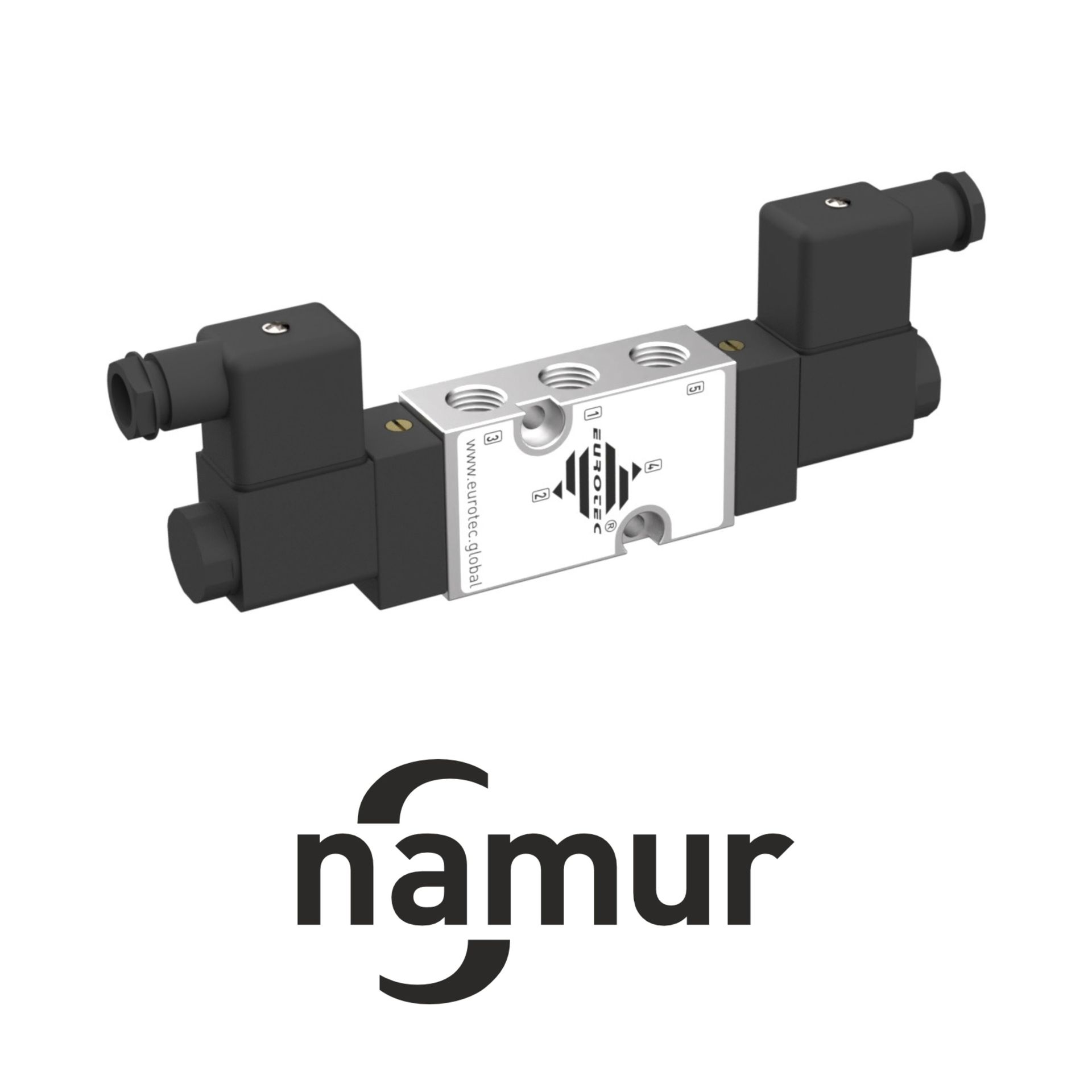 La nostra elettrovalvola bistabile NAMUR è adatta al montaggio diretto su attuatori pneumatici rotatori. Questa elettrovalvola permette di differenziare tra 5/2 e 5/3 vie con il centro di posizionamento optional; chiuso, areato o de-areato.