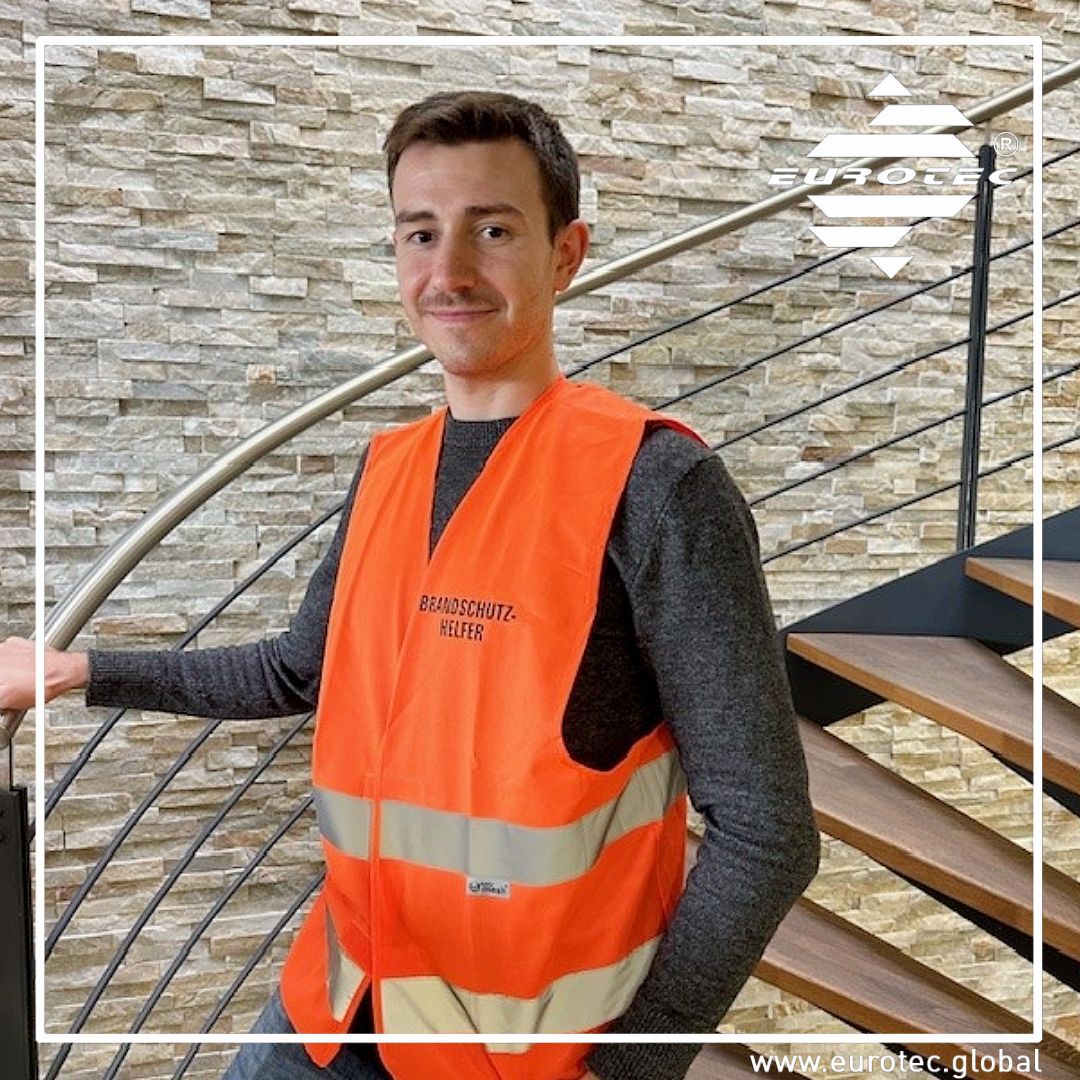 Unsere Brandschutzhelfer im Betrieb sind frisch qualifiziert - einer davon wurde neu mit einer Warnweste ausgestattet.